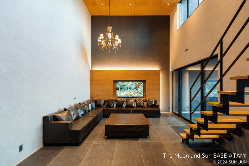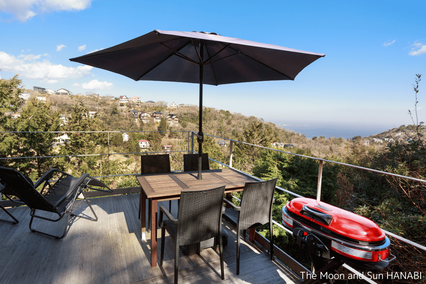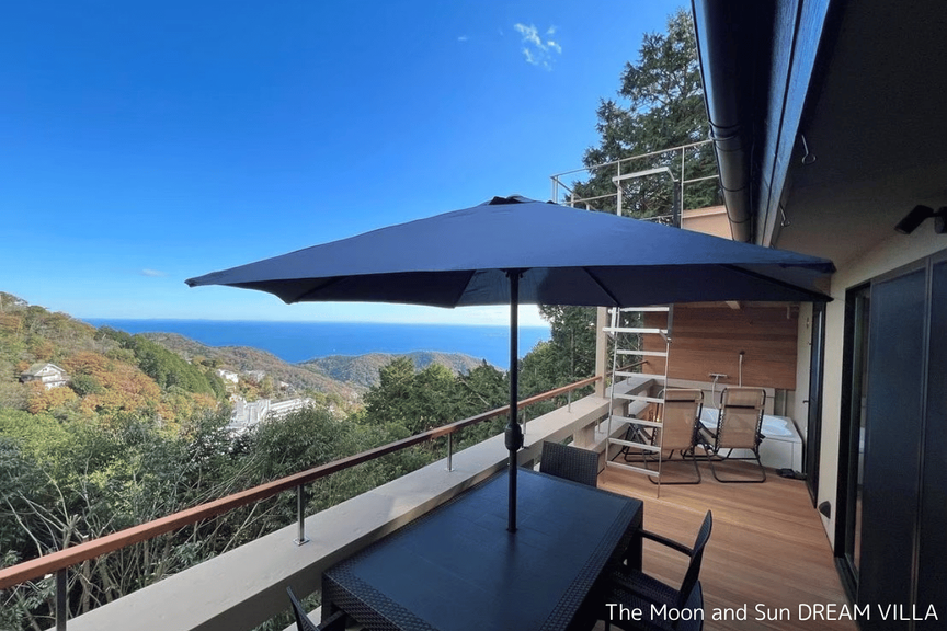 Rental villa with sauna and hot spring bath, located in Shizuoka Atami. It is a completely private rental villa for friends, couples, and families. Guests can enjoy hot springs, sauna, and barbecue.